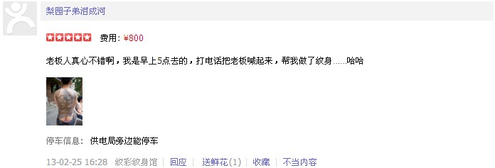 看看到紋過朋友怎么說(來自最真實(shí)的點(diǎn)評——大眾點(diǎn)評網(wǎng)):